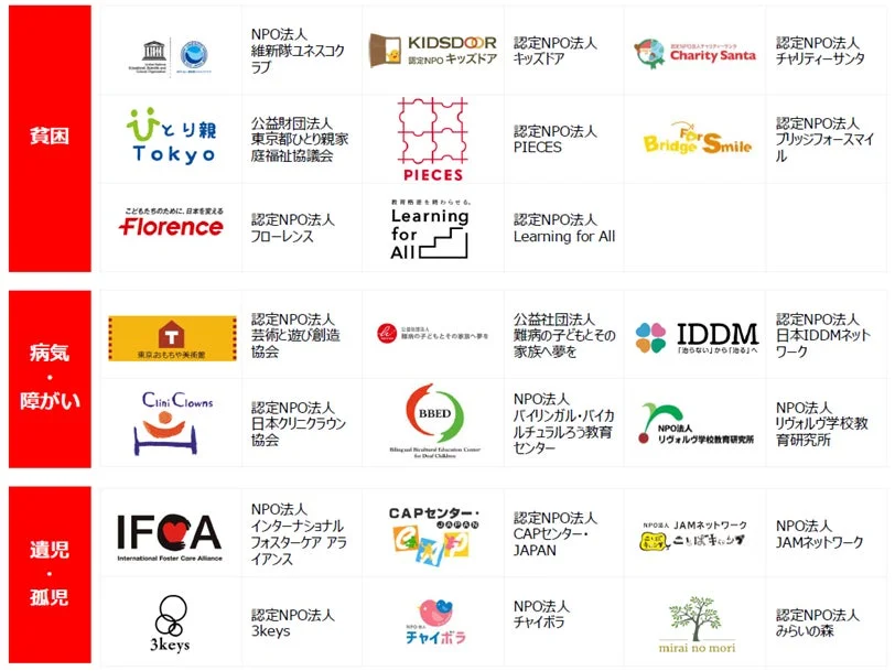この基金では、パブリックリソース財団(https://www.public.or.jp/)を通じて、未来を担う子どもたちを支援する20団体に対し、総額2,000万円の助成金(1団体あたり100万円)を交付します。助成金は2026年1月30日に交付される予定です。