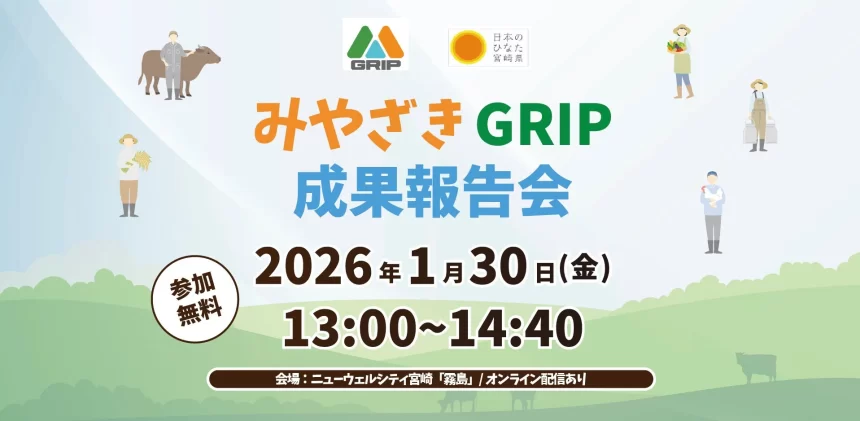 この報告会では、GRIP会員による活動報告に加え、プロジェクト代表者と宮崎県担当者が「地域資源の有効活用による持続可能な農業構造への転換」をテーマに、今後の可能性について本音で語り合うクロストークが実施されます。