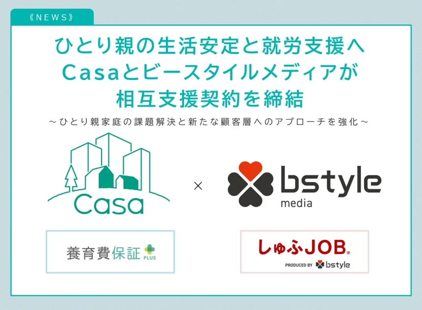 また、株式会社ビースタイルメディアの代表取締役社長である石橋 聖文氏は、「当社はこれまで、主婦層を中心に多様な働き方を支援してきました。就業支援だけでなく、生活の安定に関わる課題も多いと実感しています。今回の連携は、当社の就業支援とCasa社の養育費に関する課題解決を組み合わせることで、ひとり親家庭に、より実効性のある支援を届けたいという思いから実現しました。これは『社会課題をビジネスで解決する』というビースタイルグループのミッションを体現する取り組みの一つです」とコメントしています。