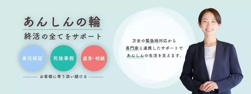 一般社団法人あんしんの輪は、埼玉県・東京都を中心に高齢者の身元保証や終活支援を行っています。入院・施設入居時の保証人受託から生活支援、そして死後事務まで、家族に代わってトータルでサポートしてくれるんです。