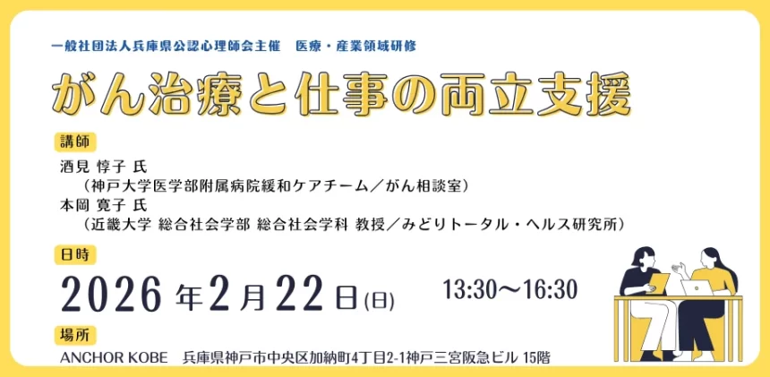 そんな課題を解決し、治療を続けながら働く人々をサポートするためのオープン研修会が、一般社団法人兵庫県公認心理師会によって神戸で開催されます。この研修会では、医療と産業、それぞれの分野の専門家が登壇し、現場での支援のポイントや工夫について深く掘り下げていきます。心理職の方はもちろん、企業の人事担当者や管理職、産業保健スタッフ、そしてこのテーマに関心がある方なら、どなたでも参加できるのが嬉しいポイントです。