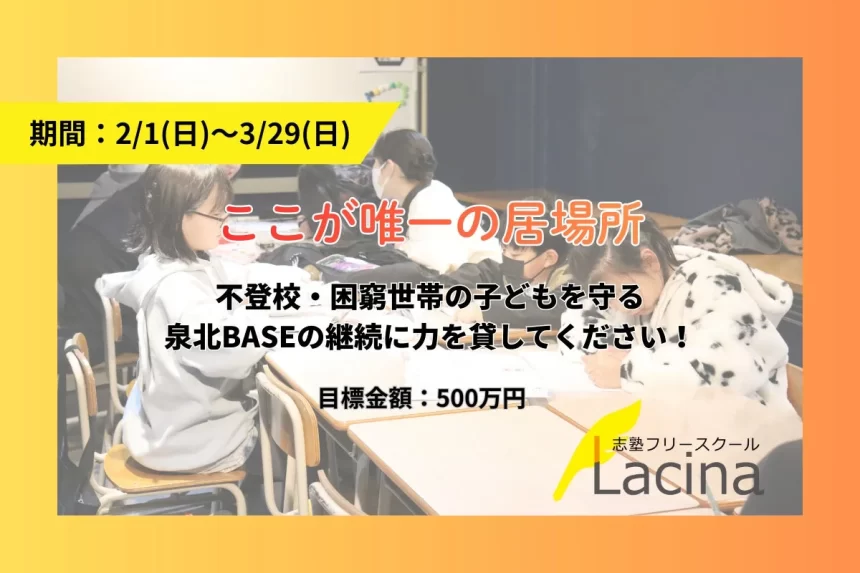 • プロジェクト名:「ここが唯一の居場所」不登校・困窮世帯の子を守る泉北BASE。継続へ力を貸して!