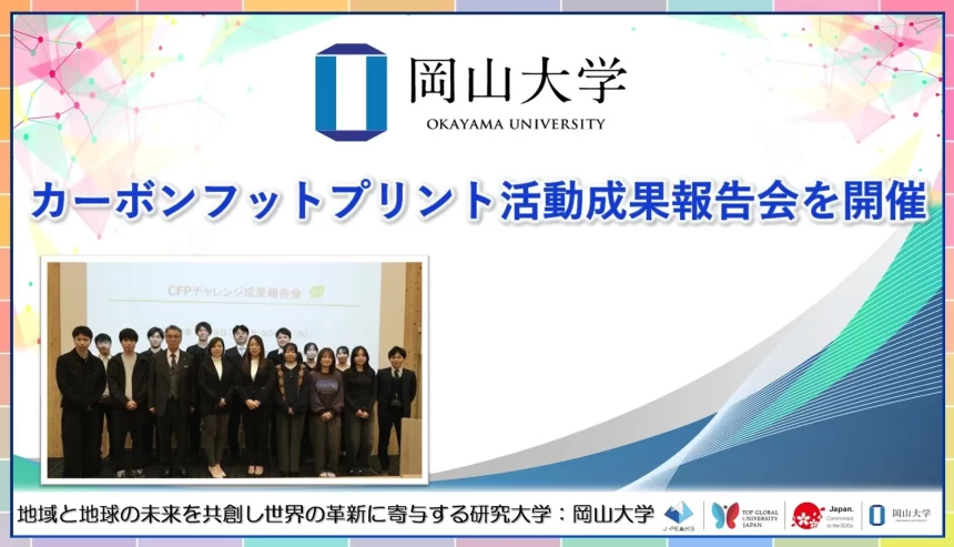 岡山大学が「カーボンフットプリント活動成果報告会」を開催!きびだんごから学生チャレンジまで、脱炭素の取り組みを楽しく報告!