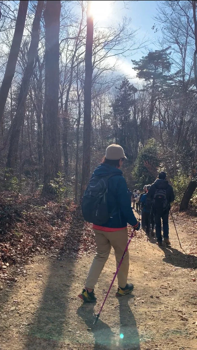 青梅丘陵でのノルディックウォーキングの様子
