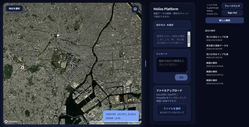株式会社Heliosが、自然言語による対話型インターフェースを備えた地理空間解析プラットフォーム「Helios Platform(ヘリオス・プラットフォーム)」のβ版を、2026年2月2日より提供開始しました。