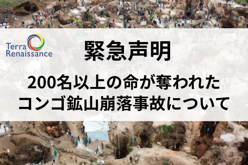 2026年1月30日、コンゴ民主共和国(DRC)東部のルバヤ鉱山で大規模な崩落事故が発生しました。この悲劇により、200名を超える尊い命が失われ、今もなお多くの人々が土砂の下に取り残されていると言われています。認定NPO法人テラ・ルネッサンスは、この事態を受けて緊急声明を発表し、国際社会に支援を呼びかけています。