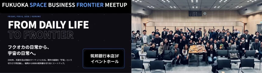2026年2月6日、福岡県久留米市で、株式会社Space Food Lab.が主催する「FUKUOKA SPACE LIVING FRONTIER MEETUP」が開催されました。このミートアップイベントは、宇宙産業の専門家や先端技術を集めることを主な目的とはしていません。むしろ、食品、製造、金融、教育といった、これまで宇宙分野とは直接的な関わりがなかった地域の既存産業が、「宇宙」というテーマをきっかけに、自社の技術や資源を未来志向で捉え直し、新たな事業の可能性を探る場となりました。
