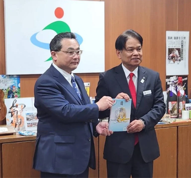 2026年2月9日、うるま市役所で寄付贈呈式が開催されました。うるま市の中村正人市長と、株式会社アイ工務店の坂井達也代表取締役社長が出席し、今後の地域連携について意見が交わされました。