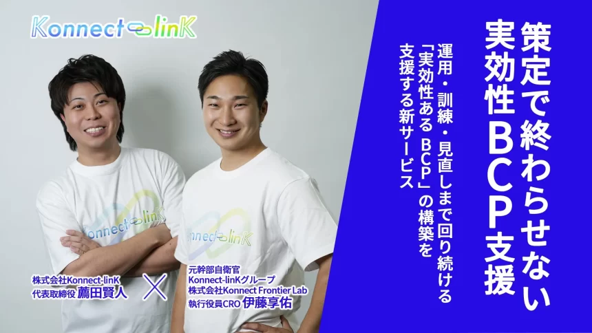 また、株式会社Konnect Frontier Lab 執行役員CROの伊藤享佑氏は、「BCPは単なる“書類”ではなく“企業の生命線を守る攻めの戦略”です。災害や有事に直面した際、迷いなく次の一手を打ち、社員の雇用と社会インフラを死守する。その「レジリエンス」こそが、組織の真の強さを証明します。」と語っています。