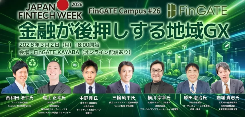 • イベント名:「Japan Fintech Week 2026」特別企画 金融が後押しする地域GX/FinGATE Campus 第26回