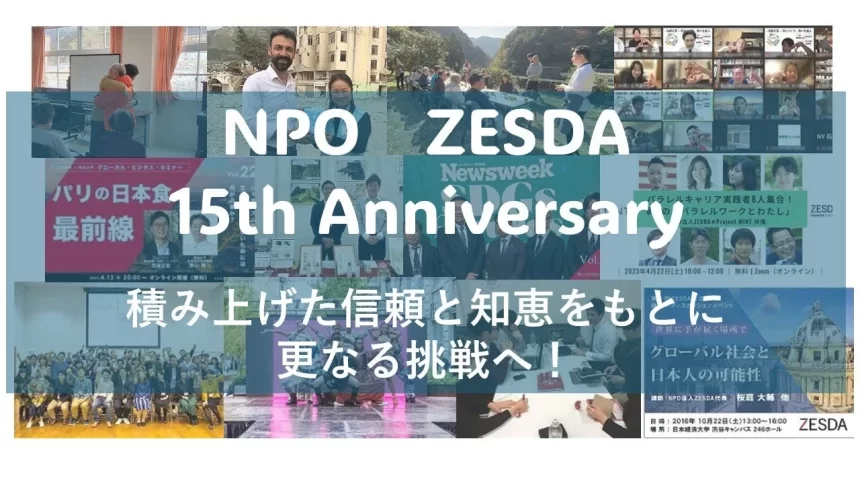 NPO法人ZESDA(日本経済システムデザイン研究会)が、今年で設立15周年を迎えました!これまで支えてきた多くの人々に感謝を伝えつつ、地方と世界をつなぐ「グローカルビジネスのプロデュース」を地道に続けてきたその軌跡と、これからの展望についてご紹介します。