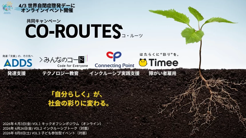 • CO-(個・共):一人ひとりの「個」の特性を大切にし、社会と「共」に環境を整えることを目指します。ADDSの心理学的知見、みんなのコードの教育的探究、タイミーの就労インフラ、Connecting Pointの伴走支援が協力し、個人の努力だけに頼らず、関係性の中で“その人らしさ”が自然に引き出される環境づくりを目指します。