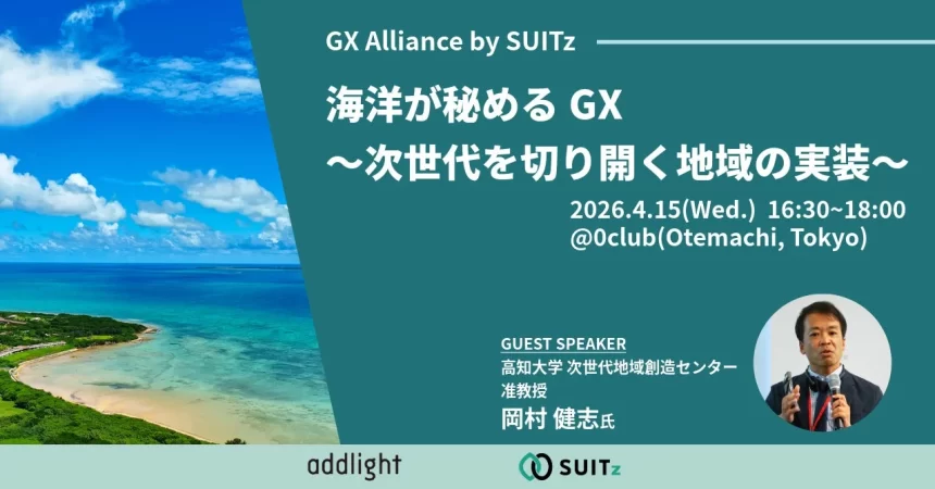 今回のイベントのテーマは「海洋が秘めるGX 〜次世代を切り開く地域の実装〜」。2026年4月15日(水)の16:30から18:00まで、東京・大手町にある「0 Club」で開催されるよ。
