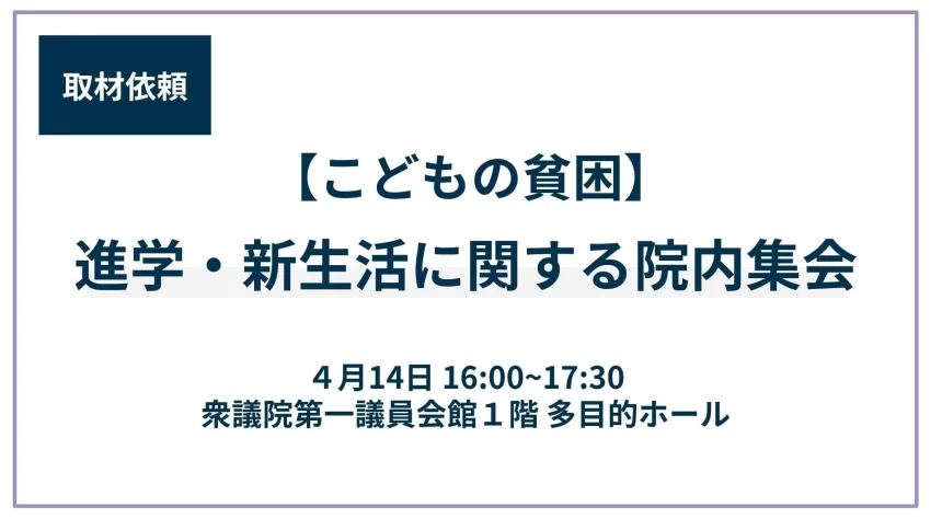 困窮子育て世帯の入学・新生活をサポート!支援施策拡充を求める院内集会が開催されます