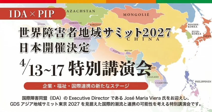 講演会では、「世界障害者地域サミット東京2027」を主なテーマに、世界の障害インクルージョンをめぐる最新の潮流や、企業・福祉・行政・市民社会に期待される役割、日本とアジアをつなぐ国際連携の可能性について深掘りします。