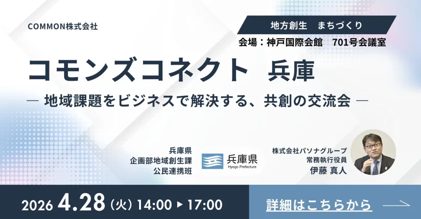COMMON株式会社は、こうした「地域の課題」と「企業の思い」をつなぎ、「つながり」で解決していくことを目指し、各地で「コモンズコネクト」を展開しています。今回の兵庫開催では、「行政×企業の共創」をテーマに、具体的な連携やビジネスにつなげるための対話と出会いを大切にするとのことです。