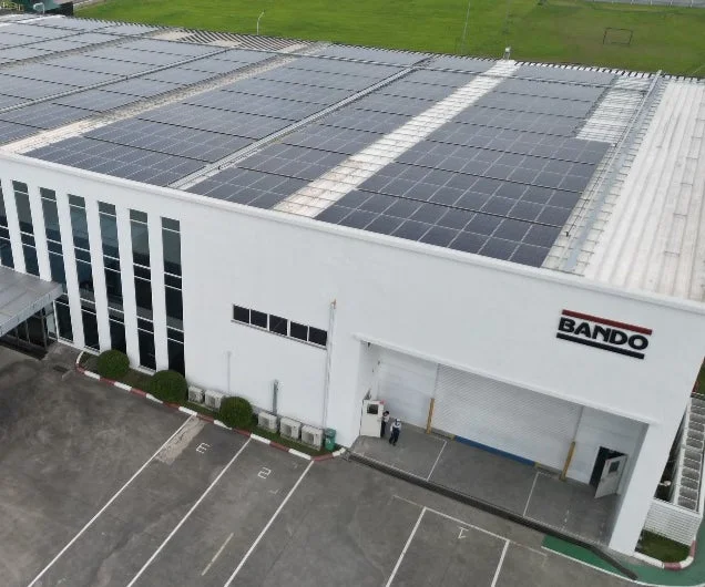 バンドーグループでは、日本国内の全工場はもちろんのこと、タイのBando Manufacturing (Thailand) Ltd.やインドのBando (India) Pvt. Ltd.、中国・天津のBando Belt (Tianjin) Co., Ltd.、そしてスペインのBando Iberica, S.A.など、世界中の拠点で太陽光発電システムを導入し、クリーンエネルギーの活用を進めています。