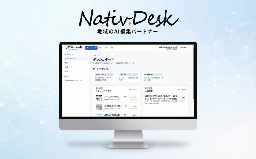 開発責任者は「地域の魅力を外に届けるには、熱量を持った発信の継続が不可欠です。しかし現場では『書きたいのに時間がない』というジレンマがありました。Nativ.デスクは、メディア運営で培った『読まれるための知見』をAIに実装し、そのジレンマを解消するツールです。煩雑な作業はAIというパートナーに任せ、人が本来注力すべき『地域の魅力の深掘り』に時間を使っていただく。このツールが、地域と関わる人々との新しい出会いのきっかけを作るツールになることを目指しています」とコメントしています。