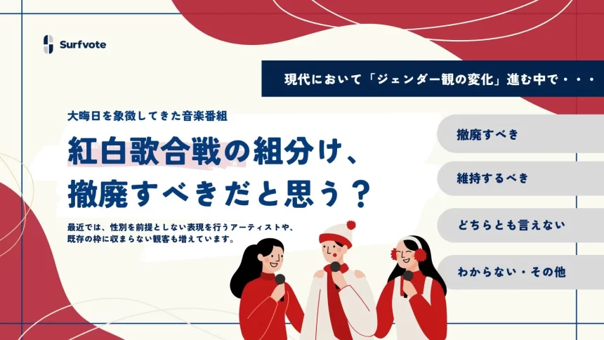 紅白歌合戦の組分け、そろそろ見直すべき?それともこのままでOK?Surfvoteで国民的議論がスタート!