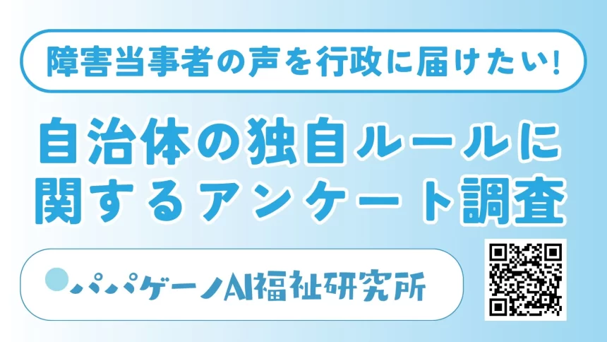 パパゲーノは、これらの問題について業界団体を通じた自治体との意見交換や、地方議会議員・東京都議会議員を通じた提言を重ねている状況です。今回の調査では、こうした自治体独自のルールに対する「障害当事者の生の声」を集め、杉並区や東京都、さらには厚生労働省への政策提言に役立てていくとのことです。