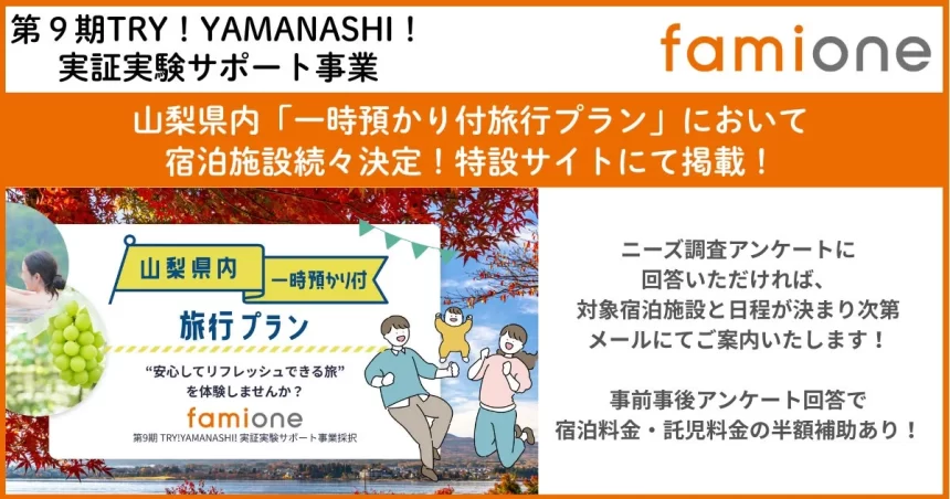 山梨県で「一時預かり付旅行プラン」がスタート!子育て中のご夫婦にリフレッシュの旅を