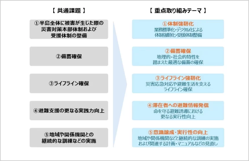 半島全体が被害を受けた際の災害対策本部体制と、支援を受け入れる体制の整備