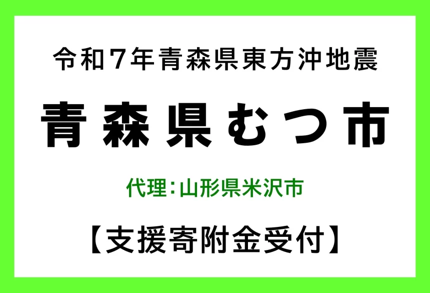 米沢市が青森県むつ市を応援!「令和7年12月青森県東方沖地震」の代理寄附受付スタート!