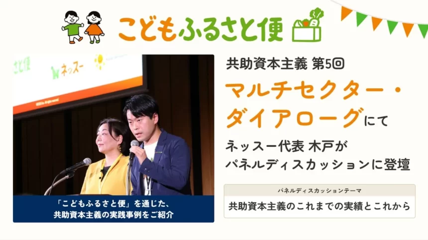 ネッスー代表取締役の木戸優起氏は、今回の登壇について「錚々たる登壇者の皆さまとご一緒させていただき、大変光栄に思います。『こどもふるさと便』は、単なる支援ではなく、立場の異なる主体が関わり合いながら“共助”を生み出す仕組みです。今後も、さまざまなセクターと連携しながら、『生まれた環境によるこどもの機会格差が存在しない社会』の実現に向けて取り組んでまいります」とコメントしています。