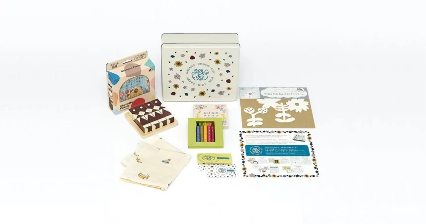「Happy Kids Box」は、育児に役立つ実用的なモノのギフト4点(おもちゃ2種類、クレヨン、スタイ)と、デジタルギフトボックス「大町市 Happy Kids eGiftカード」の計5点を、オリジナルのギフト缶に詰め合わせたものです。1人あたり2万円相当のギフトが贈られます。